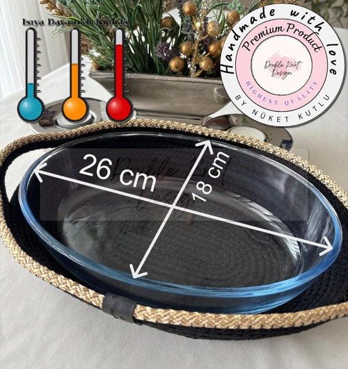 Double Knot Design 26 Cm Oval Nihale Sepet, Güveç Kabı / Borcam Kabı,Kase Koruma Kılıfı, Sunumluk, Servis Kılıfı,