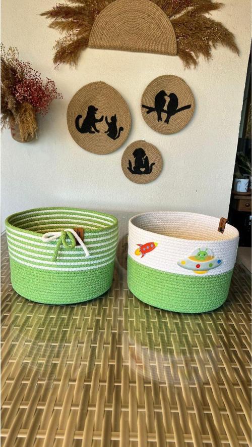 Tamamen el yapımı olan bu çok amaçlı 2 parça sepetler çocuk odalarınıza harika bir görünüm katacak.