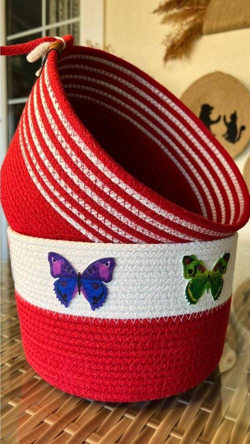 Tamamen el yapımı olan bu çok amaçlı 2 parça sepetler çocuk odalarınıza harika bir görünüm katacak.
