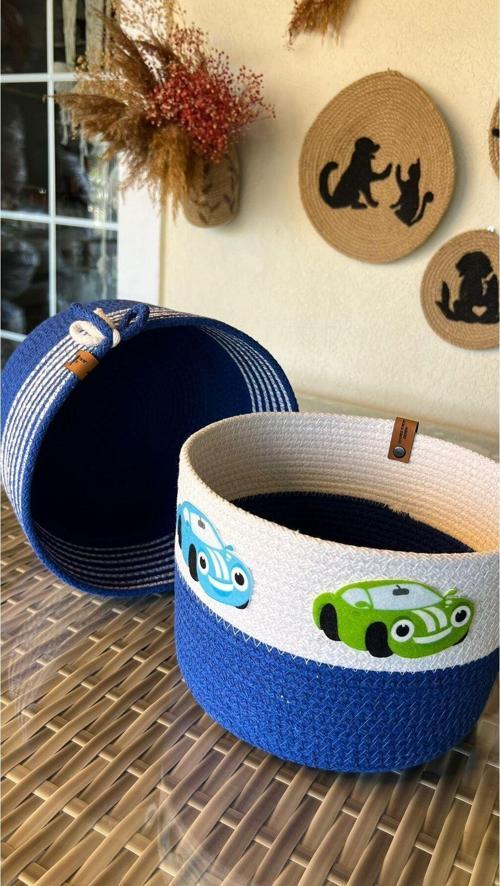 Tamamen el yapımı olan bu çok amaçlı 2 parça sepetler çocuk odalarınıza harika bir görünüm katacak.