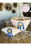 Double Knot Design 2Li Takım Plaj Çantası ,Dantel Detaylı Clutch, Totebag, Kadın Çanta, Yazlık, Hediyelik, Anneler Günü