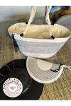 Double Knot Design 3Lü Takım Plaj Çantası , El Çantası Clutch, Şapka, Totebag, Kadın , Yazlık, Hediyelik,Anneler Günü
