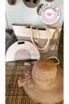 Double Knot Design 3Lü Takım Plaj Çantası , El Çantası Clutch, Şapka, Totebag, Kadın, Yazlık, Hediyelik, Anneler Günü