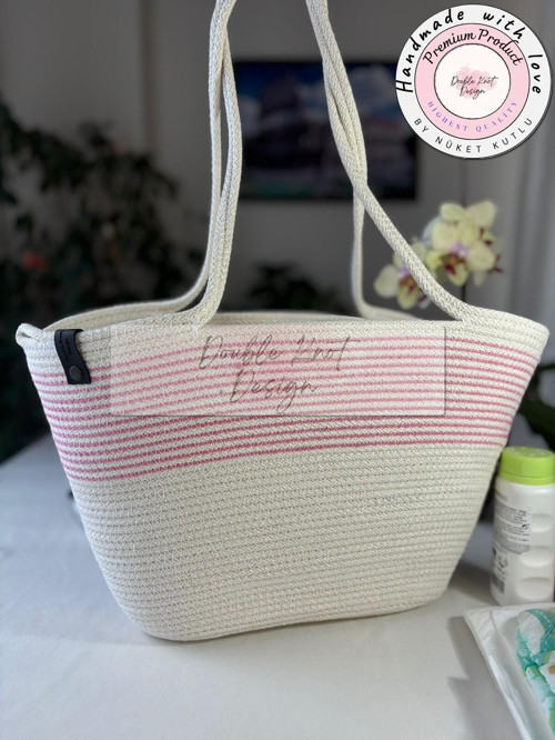 Double Knot Design Baby Bebek Bakım Çantası,Kadın Kol Çantası,Hediyelik,Anneler Günü,Hasır Jüt Tress