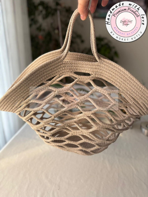 Double Knot Design File Plaj Çantası, Market Çantası, Pazar Çantası, Top Çantası, File Çanta, Tress Hasır Hediyelik