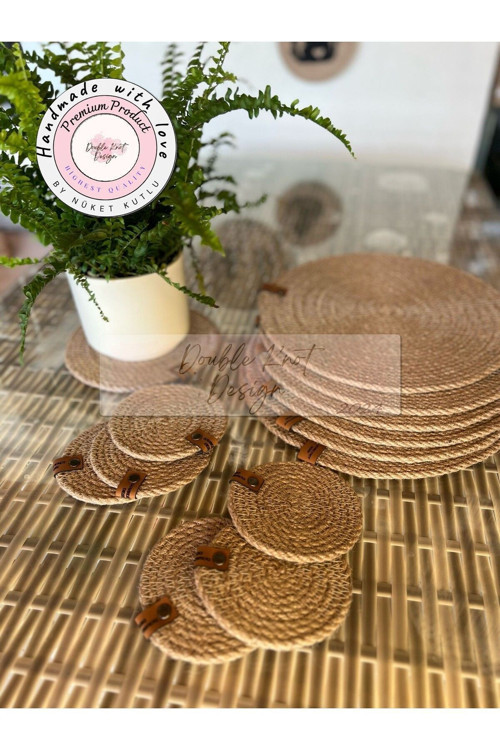 %100 el yapımı olarak 1 kalite orijinal hasır Jüt ip kullanılarak dikiş makinasında zigzag dikiş tekniği ile üretilmiştir. Yapıştırma DEĞİLDİR. Leke ve kir tutmaz, nemli bir bez yardımı ile silinebilir. 30’de sıktırma yapmadan çamaşır makinasında yıkanabilir. kurutma makinasında kurutulamaz. Deri etikete dikkat ederek ütü yapılabilir.