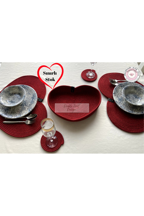 2 adet supla , 2 Adet Bardak Altlığı ve 1 adet sepetten oluşan 5 parça servis seti