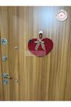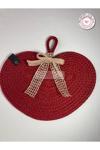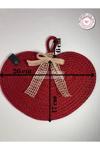 Kırmızı kalp şeklinde dikiş makinesinde dikilerek tasarlanan bu hoş kapı süsü ev dekorasyonunuza ayrı bir renk katacaktır.