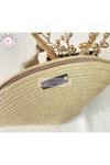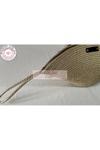 Double Knot Design Simli Altın Sarı Tress V Clutch El Çantası Makyaj Çantası Abiye Çanta Hediyelik Anneler Günü