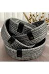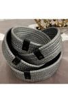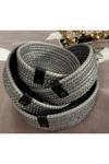 Double Knot Design Simli Parlak Gümüş Gri Tress Düzenleyici Sepet- Organizer 4Lü Set Hediyelik Anneler Günü Yılbaşı