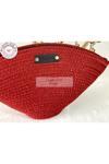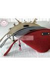 Double Knot Design Simli Parlak Kırmızı Tress V Clutch El Çantası Makyaj Çantası Abiye Çanta Hediyelik Anneler Günü