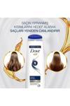 Dove Yoğun Onarıcı Şampuan, saç nemlendirici özelliğiyle saç görünümünün onarılması için saçları besler.