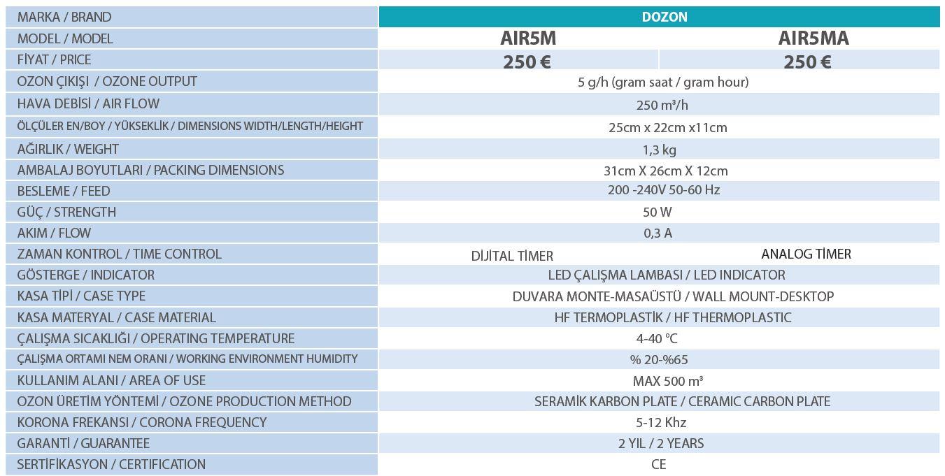 Dozon Koku Giderimi İçin Ozon Jeneratörü AIR5MA (5g/h) Analog Timer-ToptancıyızBiz