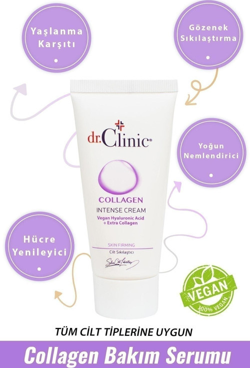 Dr.Clinic Yoğun Kolajenli Cilt Sıkılaştırıcı Krem,içerisinde barındırdığı Vegan Hyalüronik Asit ve ekstra Kolajen sayesinde cildi canlandırır. Cilt dokusuna extra nemlilik kazandırır. Yüzde zaman içinde oluşmuş çizgiler, deride yumuşama, sarkma, elastikiyetini kaybetme gibi unsurlar