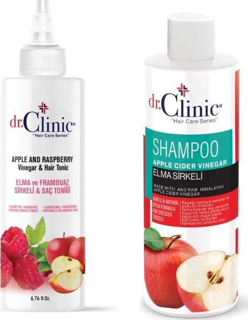 Elma ve frambuaz sirkeli saç toniği ile birlikte gelen bu set, saçları derinlemesine temizlerken aynı zamanda ferahlatıcı bir etki sunar