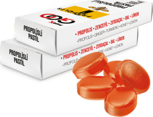 İçindekiler: Şeker, Maltoz, Bal (%,1,73), Propolis Ekstraktı (%,035), Zencefil Ekstraktı (%0,40), Zerdeçal Ekstraktı (%0,40), Limon Aroma Verici, Limon Yağı (%0,08).