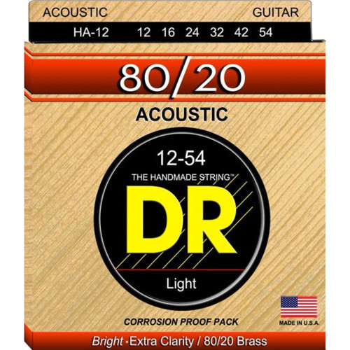 DR HA12 HiBeam 80/20, akustik gitarlar için özel olarak üretilmiş bir tel setidir. Light kalınlıkta (12–54) olan bu set, 80/20 bronz sarım ve heksagonal (altıgen) çekirdek yapısı ile öne çıkar. Geleneksel ton rengini ve güçlü sahne projeksiyonunu bir araya getirerek, pek çok akustik tarz için güvenilir bir seçenek sunar.