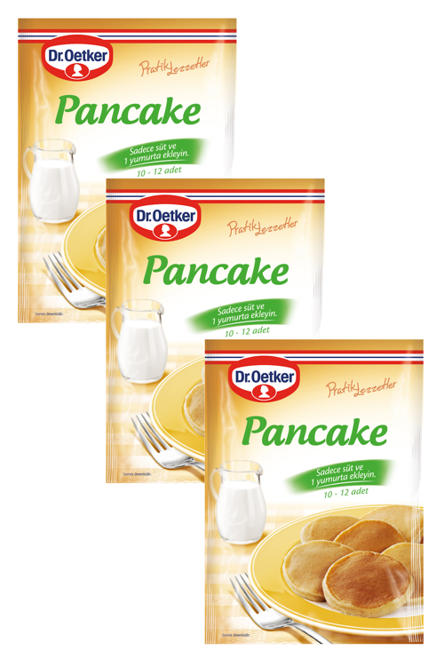 "150 ml süt ve 1 yumurta içindir. 1- Toz karışımı bir kaba boşaltın ve üzerine 150 ml (yaklaşık 1,5 çay bardağı) süt ve 1 yumurta ilave edin. El çırpıcısı veya çatal ile düzgün bir hamur haline gelinceye kadar yaklaşık 1-2 dakika karıştırın. 2- Yapışmaz yüzeyli tavayı orta ateşte 1-2 dakika ısıtın. Hamurdan yaklaşık 1-1,5 yemek kaşığı alarak tavaya dökün ve hafifçe yayın. Kısık ateşte her iki yüzeyi de kızarıncaya kadar pişirin. 3- Bal, reçel, kakaolu fındık kreması, Dr. Oetker Pudra şekeri, Hazır Çikolatalı veya Böğürtlenli Sos ile servis yapın.