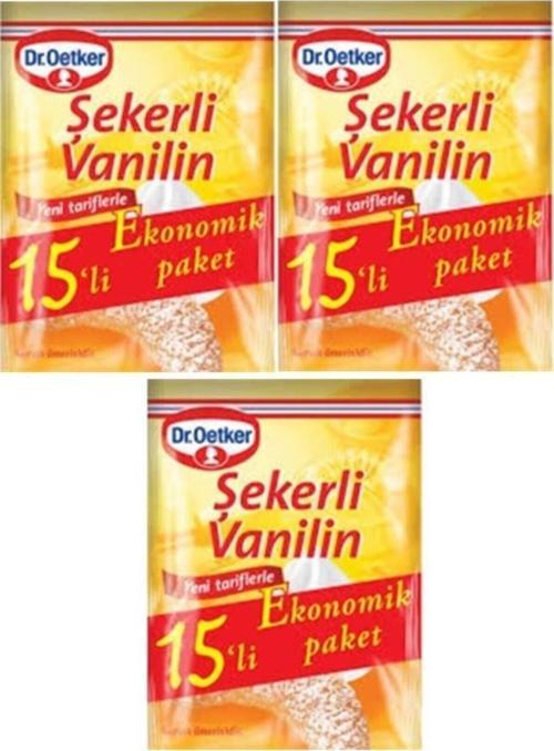 Dr.Oetker Şekerli Vanilin 15'Li 75 Gr 3 Adet Şekerli Vanilin Seçkin bir aroma, tatlı ve pastaların vazgeçilemez yardımcısı!1894'den beri hamur işleri, tatlılar ve içecekler Dr. ; Oetker Şekerli Vanilin ile aromalandırılıyor.Poşetin tamamı 500 g un veya 1 litre süt içindir. ; Bu ürün 5 gr ’lık poşetler halinde paketlenmiştir. ; Satışa sunum şekli 5'li, 10'lu ve 15'li paketler şeklinde düşünülmüştür.Ürün glutensiz olarak üretilmektedir.Her poşette farklı tarif yer almaktadır.;