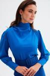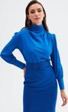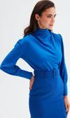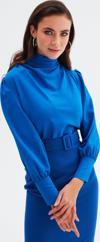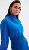 Drapeli yaka, uzun manşetli ve fermuarlı kol, salaş bluz.