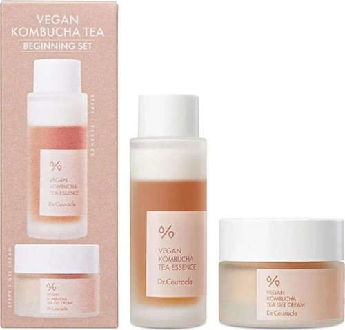 Dr. Ceuracle Vegan Kombucha Tea Beginning Set, orta boy veġan kombucha özlü ürünler içeren bir settir. Bu ikili, gözenekleri temizlerken cildi nemlendirir, besler ve yağ dengesini sağlayarak ışıltılı bir cilt görünümü sunar.