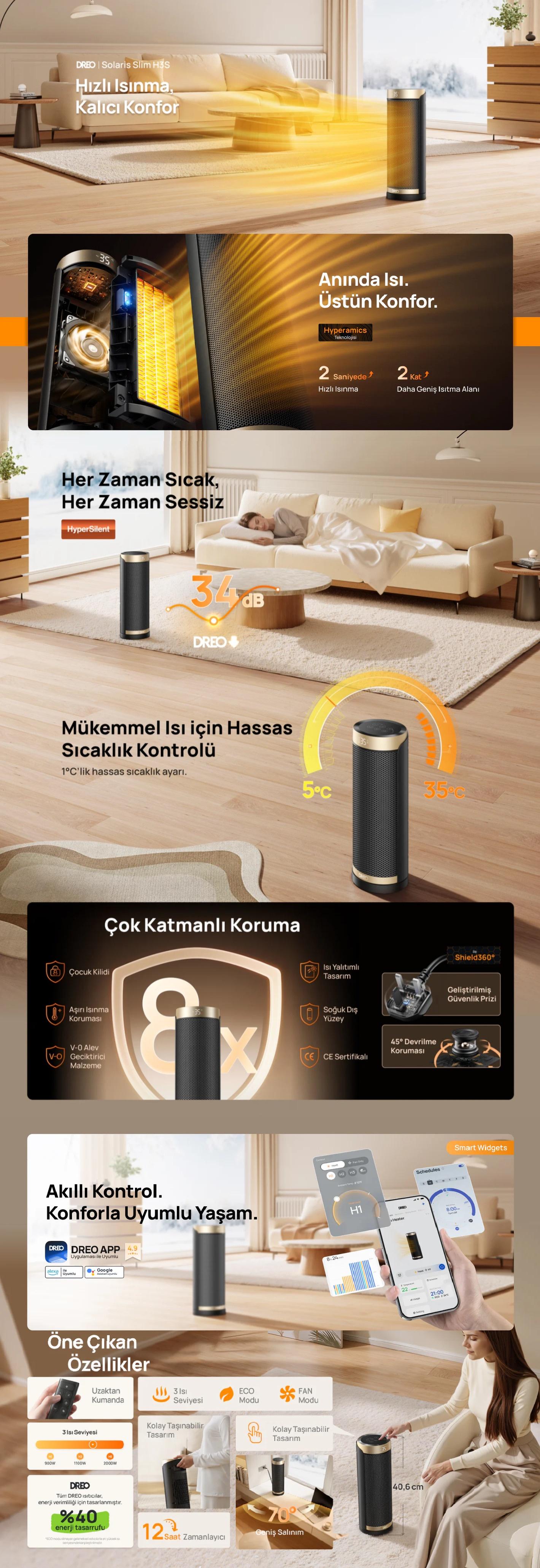 DREO Solaris Slim H3S Akıllı Elektrikli Isıtıcı (Distribütör Garantili)