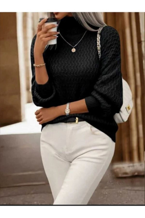 Balıkçı yaka tasarımı ile hem şık hem de sıcak tutan bir stil sunar