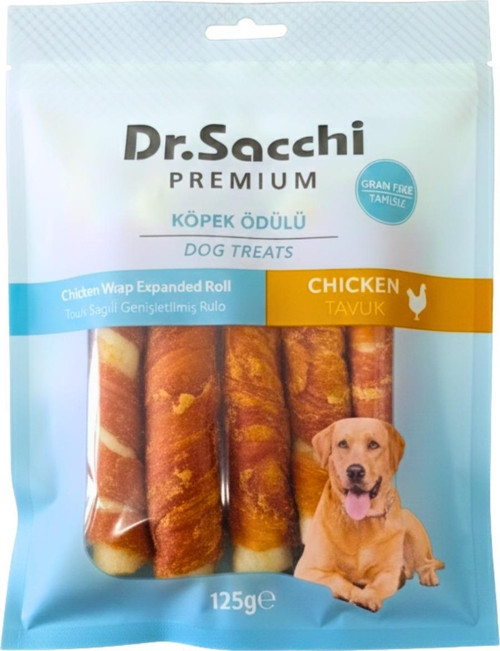 Dr.Sacchi Premium Tavuk Sargılı Genişletilmiş Rulo Tahılsız Köpek Ödülü 5" 25 Gr 5'li