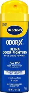 Dr.Scholl’s Odor-X Ayak Kokusu Karşıtı Pudralı Sprey, güçlü içeriği sayesinde ayak kokusunu yok etmeye, ferah bir his sağlamaya ve gün boyu terlemeye karşı koruma sunmaya yardımcı olur.