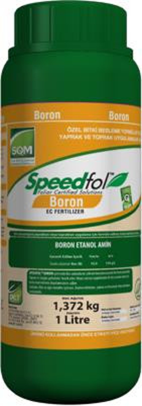Speedfol Bor, bor etanolamin olarak bor içeren çözünür sıvı gübredir. Bor hücre duvarında önemli rol oynayan bir mikro elementtir. Bor noksanlığında kalsiyum pektat oluşumu engellenmiş ve bitki savunma sistemi bu durumdan olumsuz etkilenmiştir. Ayrıca bor, polen tüpü büyümesi ve polen çimlenmesi üzerinde de etkili olduğundan bor eksikliği, ciddi meyve oluşumu veya meyve tutumu eksikliğine neden olabilir.