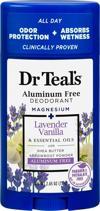 Dr Teal's Alüminyum İçermeyen Stick Deodorant, tüm gün nemi emme ve kokuyla mücadele etme konusunda klinik olarak kanıtlanmıştır. Formül, vücut için önemli bir mineral olan magnezyumun yanı sıra okroot tozu ve karbonat içermektedir. Lavanta esansiyel yağları, hindistancevizi yağı, jojoba yağı ve shea yağı ile zenginleştirilmiştir, böylece cilt hoş bir kokuya ve yumuşak bir hisse sahip olur.