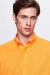 Ds Damat Comfort Açık Turuncu Düğmeli Yaka Rahat Kesim Keten Görünümlü %100 Pamuk Gömlek