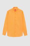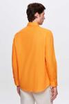 D's Damat Ds Damat Comfort Açık Turuncu Düğmeli Yaka Rahat Kesim Keten Görünümlü %100 Pamuk Gömlek