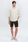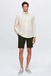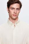 Ds Damat Comfort Bej Düğmeli Yaka Rahat Kesim Keten Görünümlü %100 Pamuk Gömlek