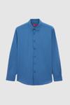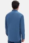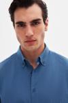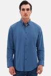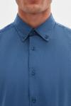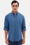 Ds Damat Comfort İndigo Düğmeli Yaka Rahat Kesim Keten Görünümlü %100 Pamuk Gömlek