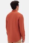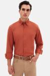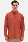 Ds Damat Comfort Kiremit Düğmeli Yaka Rahat Kesim Keten Görünümlü %100 Pamuk Gömlek