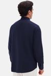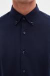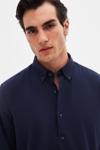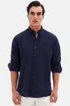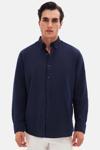Ds Damat Comfort Lacivert Düğmeli Yaka Rahat Kesim Keten Görünümlü %100 Pamuk Gömlek