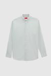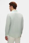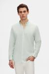 Su yeşili rengiyle dikkat çeken bu gömlek, keten görünümlü %100 pamuk kumaşıyla konforlu bir kullanım sağlar.