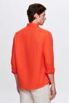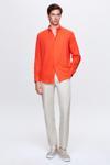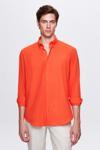 D's Damat Ds Damat Comfort Turuncu Düğmeli Yaka Rahat Kesim Keten Görünümlü %100 Pamuk Gömlek