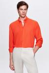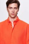 Ds Damat Comfort Turuncu Düğmeli Yaka Rahat Kesim Keten Görünümlü %100 Pamuk Gömlek