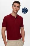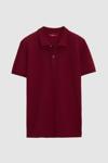 Regular Fit Bordo %100 Pamuklu Uzun Ömürlü Kıvrılmaz Polo Yaka Nakışlı T-Shirt