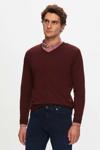 D's Damat Regular Fit Bordo Düz V Yaka Triko Kazak