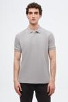 D's Damat Regular Fit Gri %100 Pamuklu Uzun Ömürlü Kıvrılmaz Polo Yaka Nakışlı T-Shirt