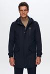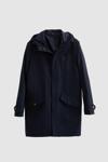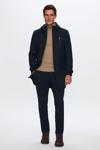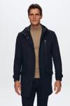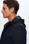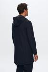 D's Damat Regular Fit Lacivert Çizgili Yünlü Kapüşonlu Kaşe Kaban