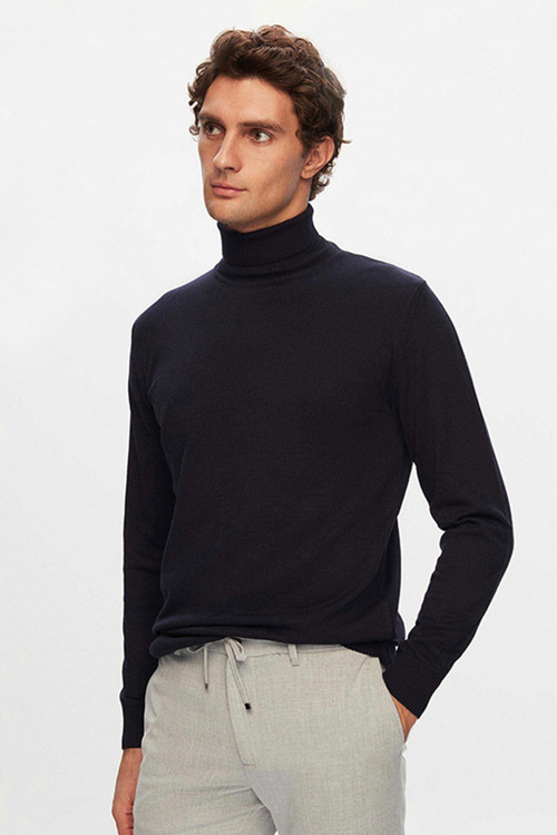 D's Damat Regular Fit Lacivert Pamuk Karışımlı Balıkçı Yaka Triko Kazak