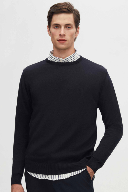 D's Damat Regular Fit Lacivert Tüylenme Yapmayan Bisiklet Yaka Pamuklu Triko Kazak
