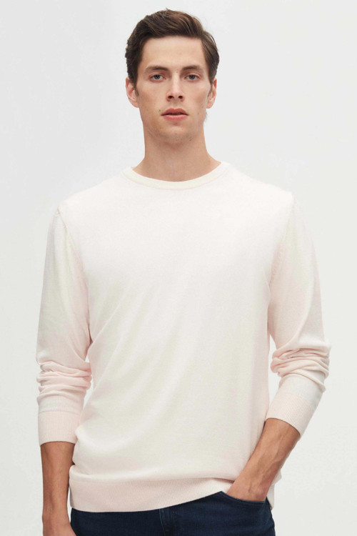 Pudra rengi ile dikkat çeken kazak, her türlü kombinle uyum sağlar.