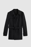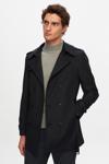 D's Damat Regular Fit Siyah Apoletli Beli Kemerli Pardösü/Trenckot