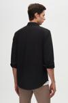 Dagoster DMG23-199598 Siyah Ottoman Örme Apaj Yaka Oversize Kalıp Kısa Kol Erkek Gömlek - Image 1