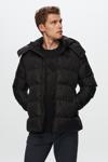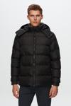 Regular Fit Siyah Rüzgar Geçirmez Kapüşonlu Kışlık Şişme Mont